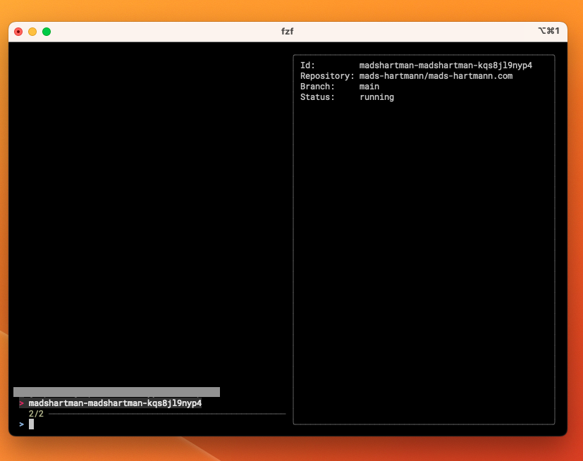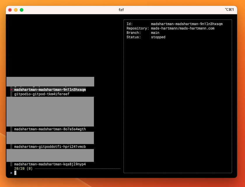 | fzf -m --preview 'gitpod ws get {}' \
