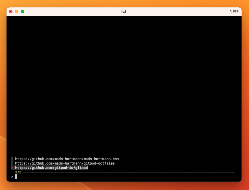 This allows me to type new in my terminal to get an interactive picker with my most commonly used repositories. The real list is longer but I've redacted a few private repositories 😉